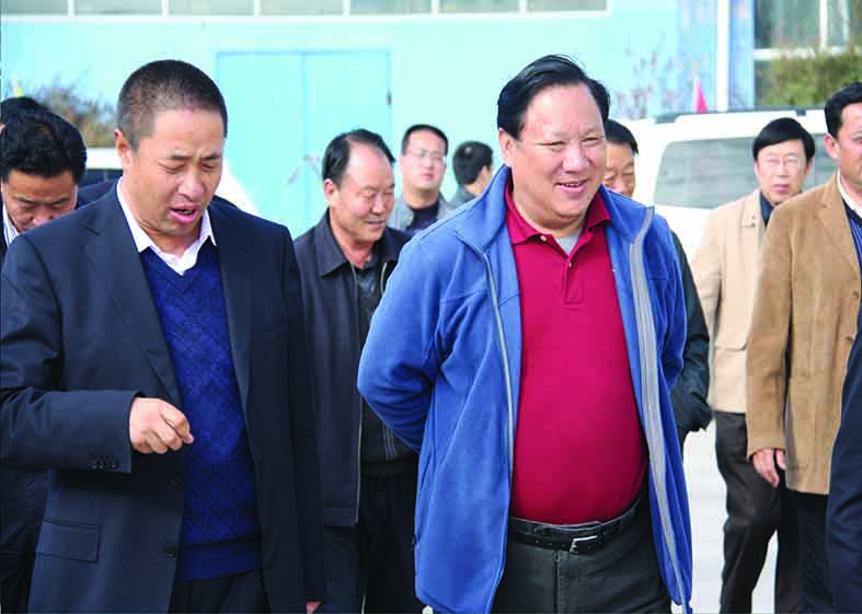 原甘肅省委常委、政法委書記澤巴足(右)在華羚集團董事長敏文祥(左)的陪同下視察華羚公司