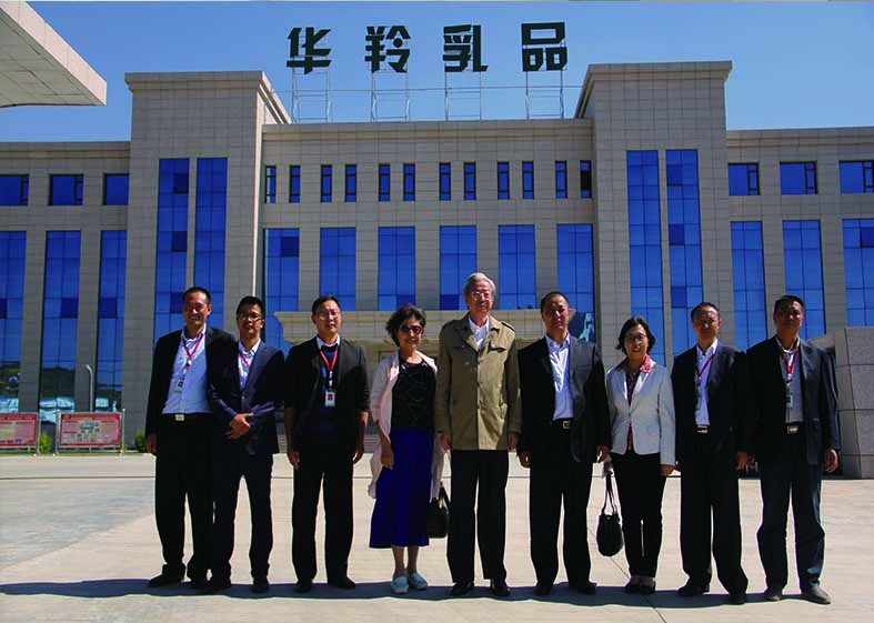 中國乳制品工業協會名譽理事長宋昆岡(中),中國乳制品工業協會副理事長兼秘書長劉美菊(左四),中國農業大學食品科學與營養工程學院教授毛學英(右三)在華羚集團董事長敏文祥(右四)的陪同下視察華羚公司