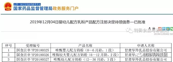 2019年12月4日,國家藥品監督管理局發布最新一批通過注冊的嬰幼兒配方乳粉名單: