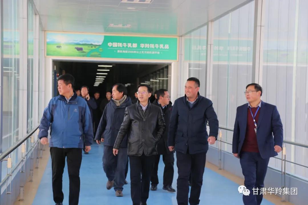 2021年1月8日,甘肅省農業農村廳農村政策與改革處處長、一級調研員張選民,省文明辦機關黨總支書記馬能福,省農辦秘書一處副處長、三級調研員潘全先,省住建廳村鎮處四級調研員王宗年,省林草局造林綠化處副處長石學強一行領導在甘南州副州長梁維吉,甘南州農業農村局黨組書記、局長楊智明,合作市副市長加華東珠,合作市農業農村局黨組書記、局長張錦龍的陪同下蒞臨甘肅華羚乳品股份有限公司調研指導工作。