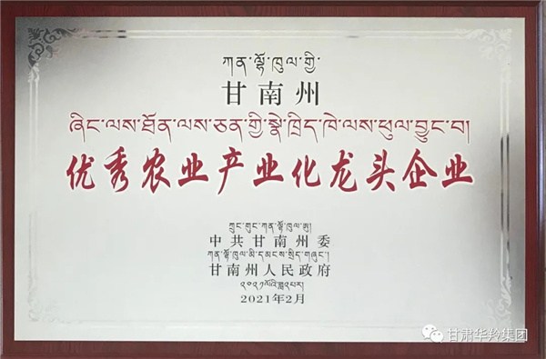 2021年3月9日,甘南州召開州委農牧工作會議暨全州鞏固拓展脫貧攻堅成果同鄉村振興有效銜接工作會議,甘肅華羚乳品股份有限公司榮獲“甘南州優秀農業產業化龍頭企業”榮譽稱號并予以通報表揚。